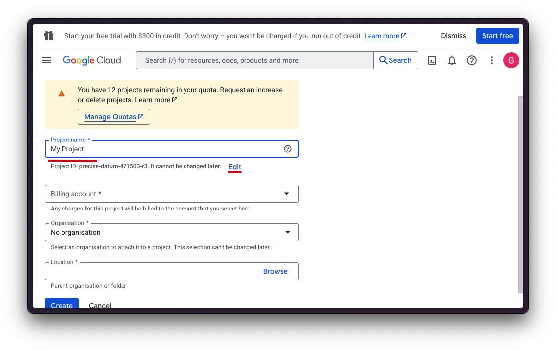 1.4.4 กรอกชื่อ Project ID ที่ต้องการ (ไม่สามารถเปลี่ยนแปลงภายหลังได้) หากไม่กรอกจะเป็นค่า Default